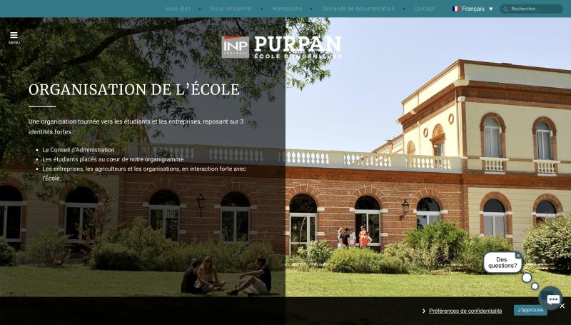 Cette Ă©cole avec de grandes ambitions pour lâavenir des Femmes et des Hommes qu'elle accueille, possĂšde une trĂšs belle histoire ainsi que de trĂšs belles valeurs. Les formations dĂ©bouchent sur le premier secteur dâemploi en France et mettent lâaccent sur des fondamentaux qui n'ont jamais Ă©tĂ© autant d'actualitĂ© comme l'alimentaire et l'environnement. Aucun doute, Purpan est une Ă©cole de rĂ©fĂ©rence parmi les Ă©coles d'ingĂ©nieurs post bac !